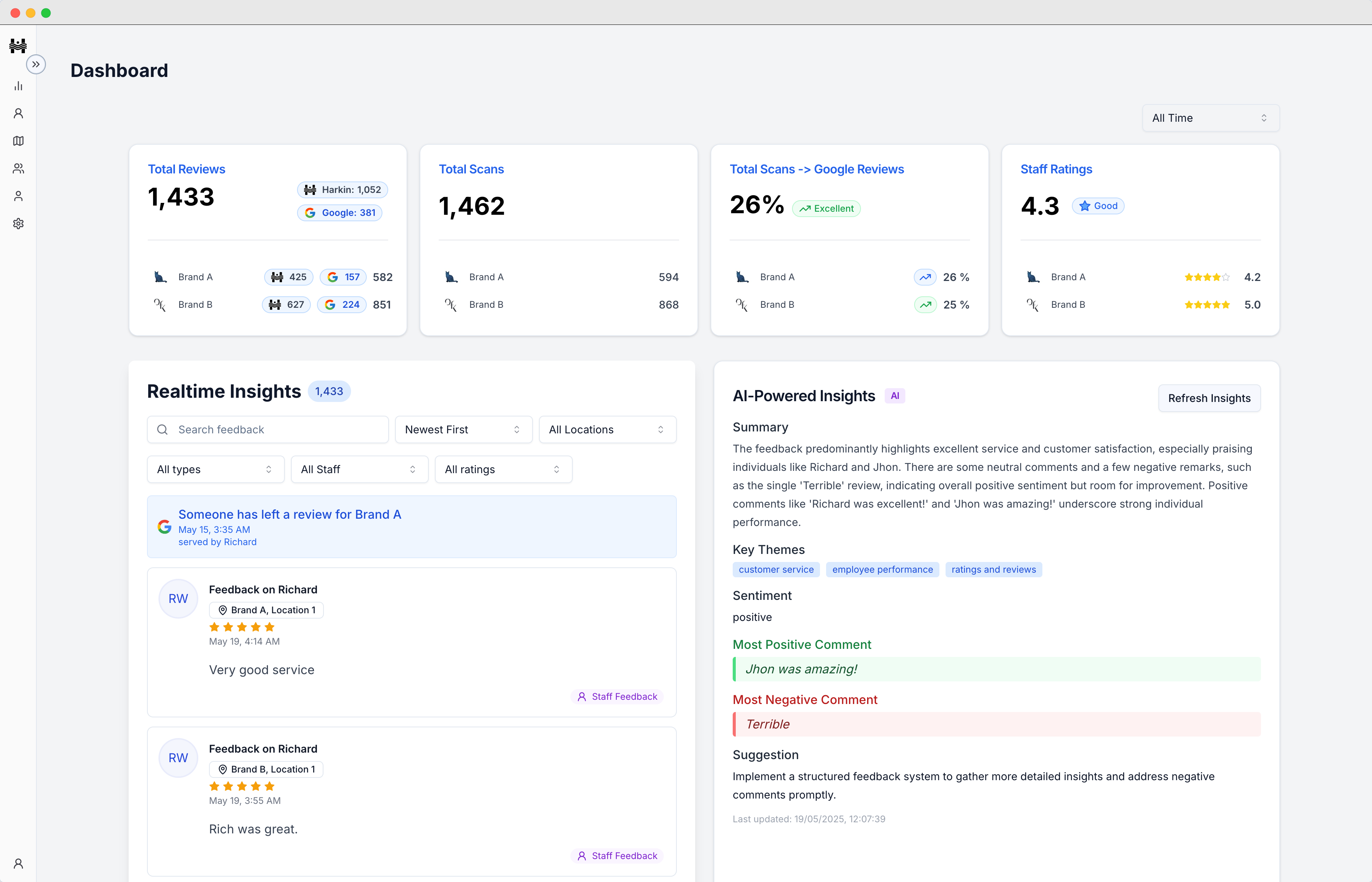 Harkin connects your front-line teams with your customers, helping you gather feedback, recover service, and turn visits into lasting loyalty β without apps or friction.